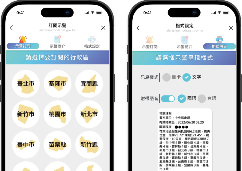 - 加入後,點下訂閱示警,選擇您的行政區與需要的示警類型,就能收到即時的災害訊息囉!